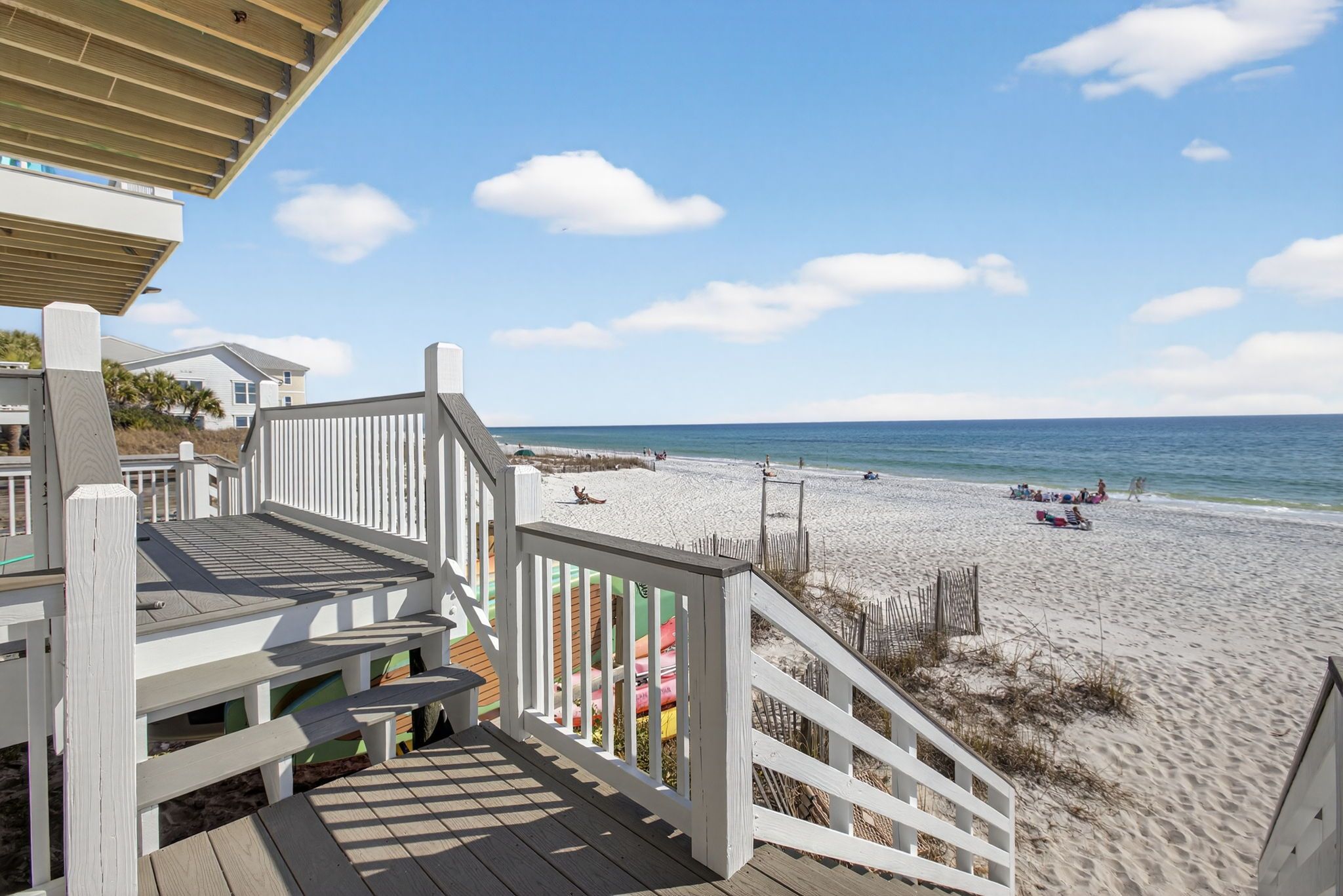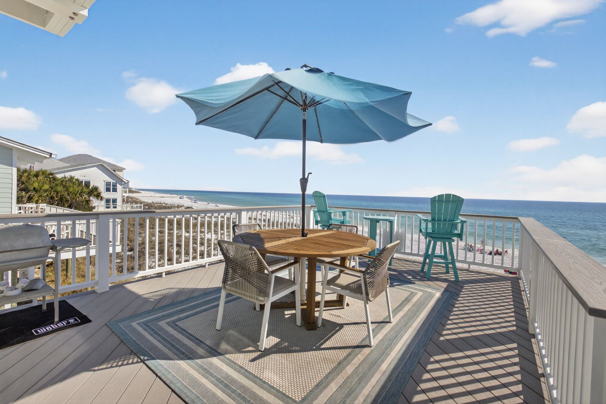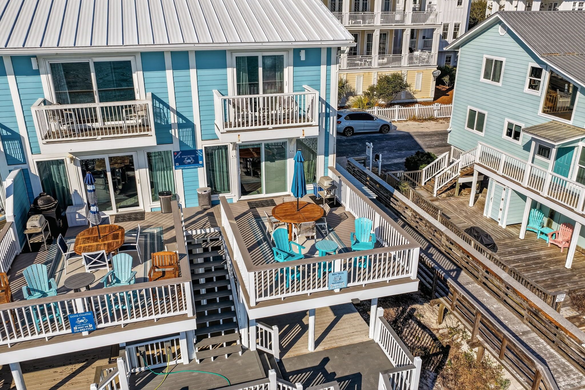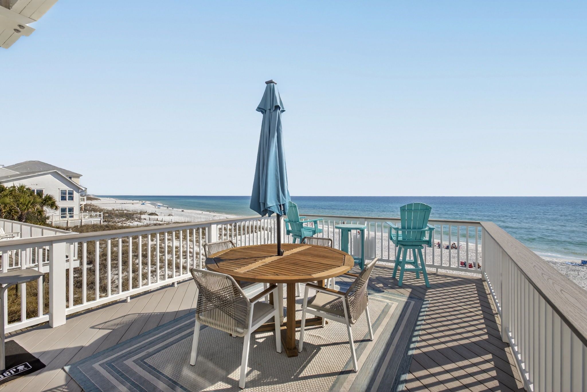 Stay on one of the best beaches in the US located in Santa Rosa Beach, FL. Conveniently LOCATED 1 mile from Seaside Beach you will find the laid back and relaxed beach town Seagrove Beach. Seagrove is known for its old charm and coastal dune lakes along with the close proximity to shops and restaurants. We offer 2 complimentary custom lounge chairs and an oversized umbrella during peak season from March 1 – Oct 31 from the hours of approximately 8:00 AM - 5:00 PM. If more chairs are needed you can choose to rent from the onsite cabana beach chair service or carry out the provided additional chairs from the golf cart garage by the carport. We try and do everything possible to make your stay with us convenient and extraordinary while on your vacation with Gone Coastal Beach Rentals.