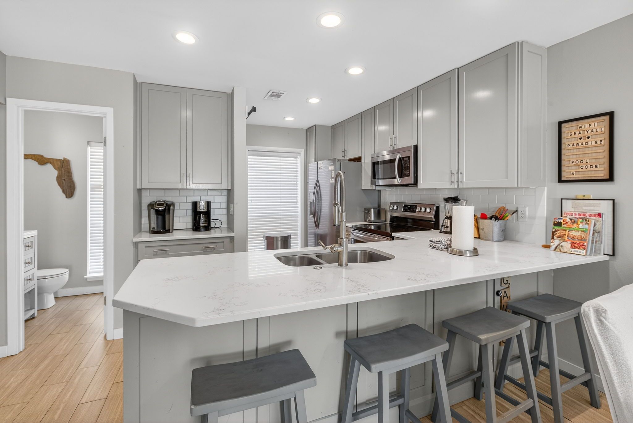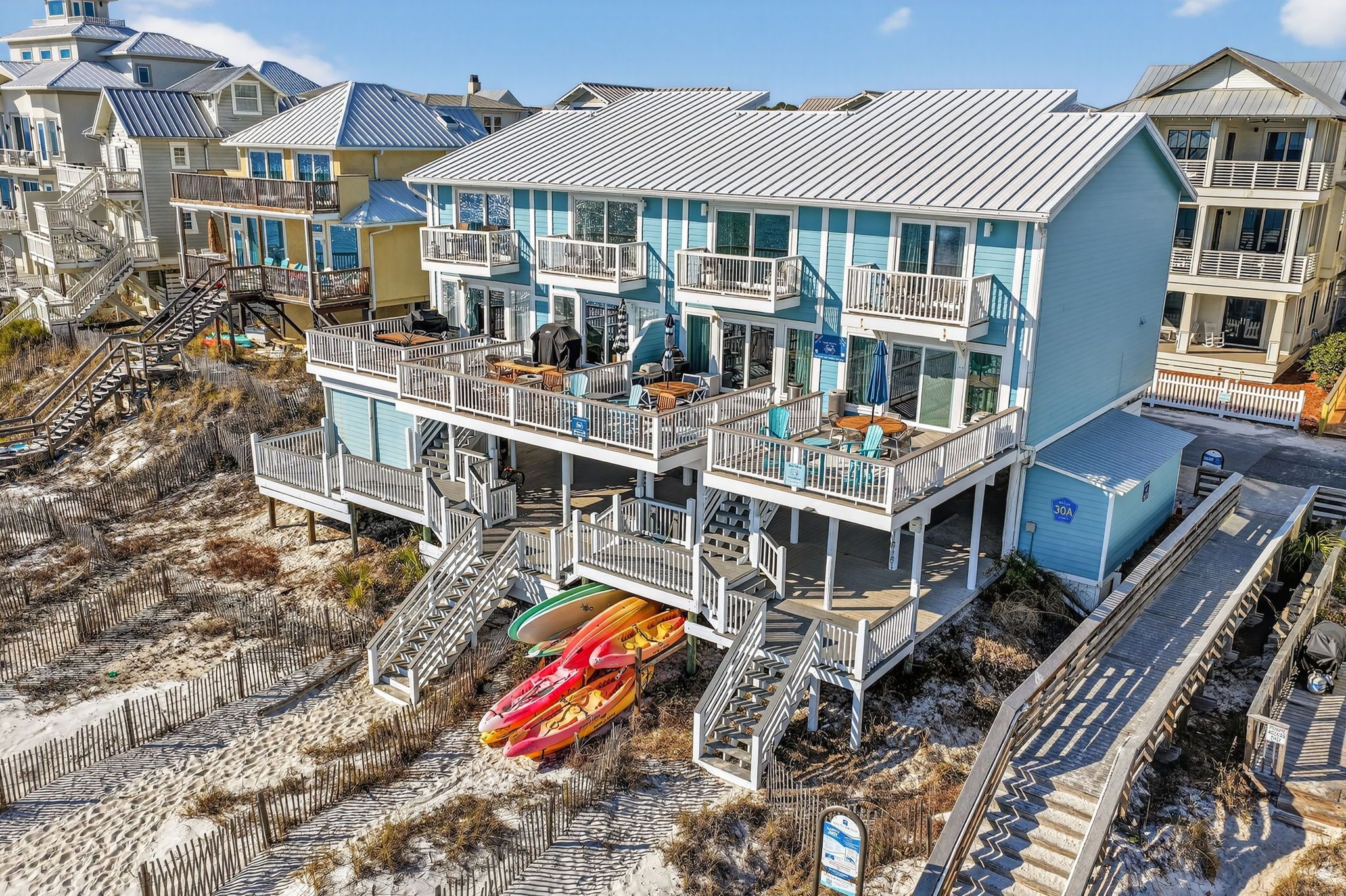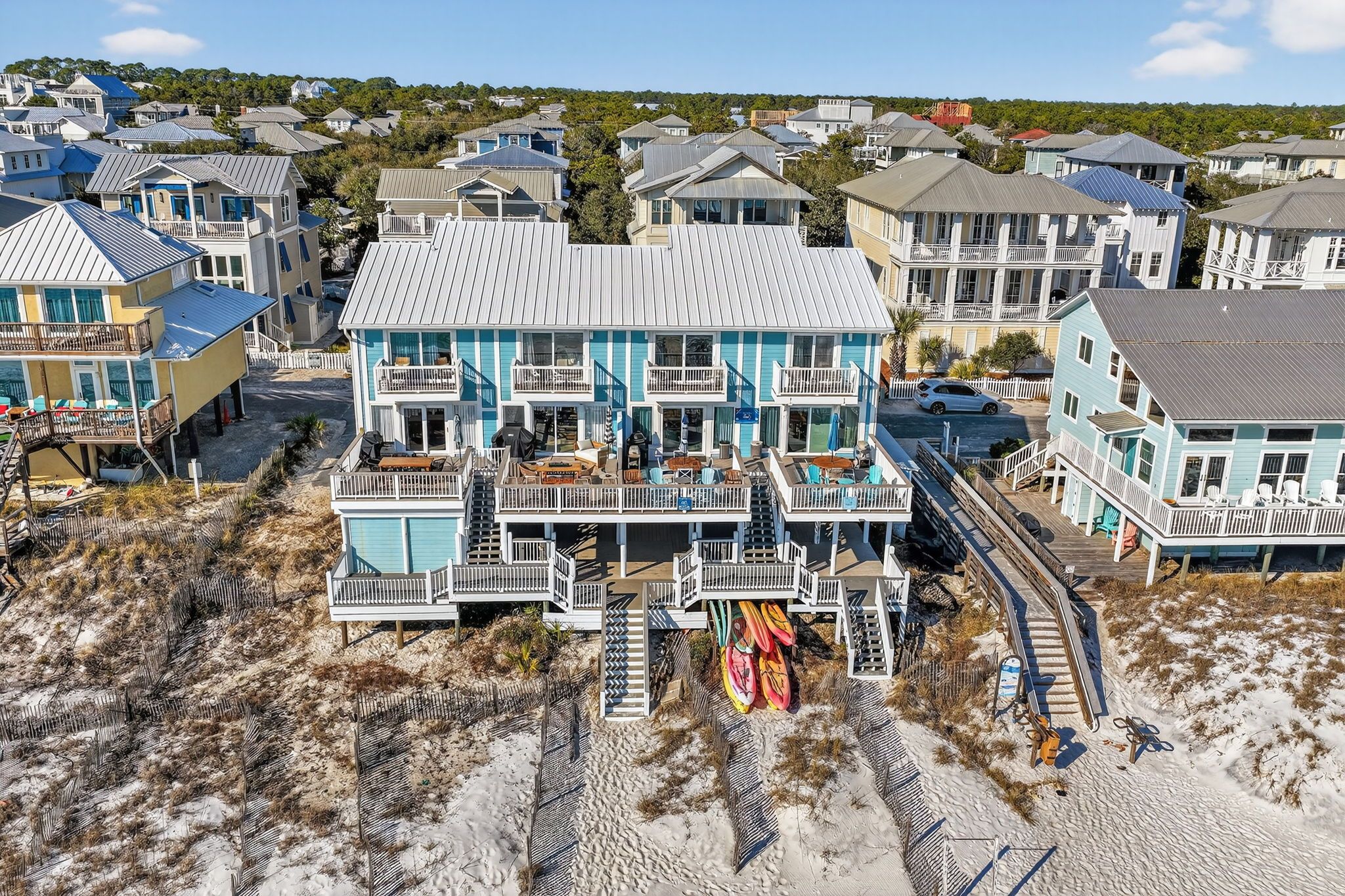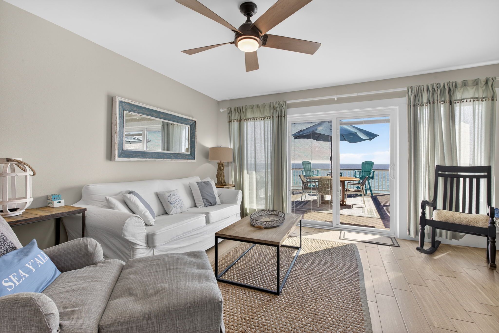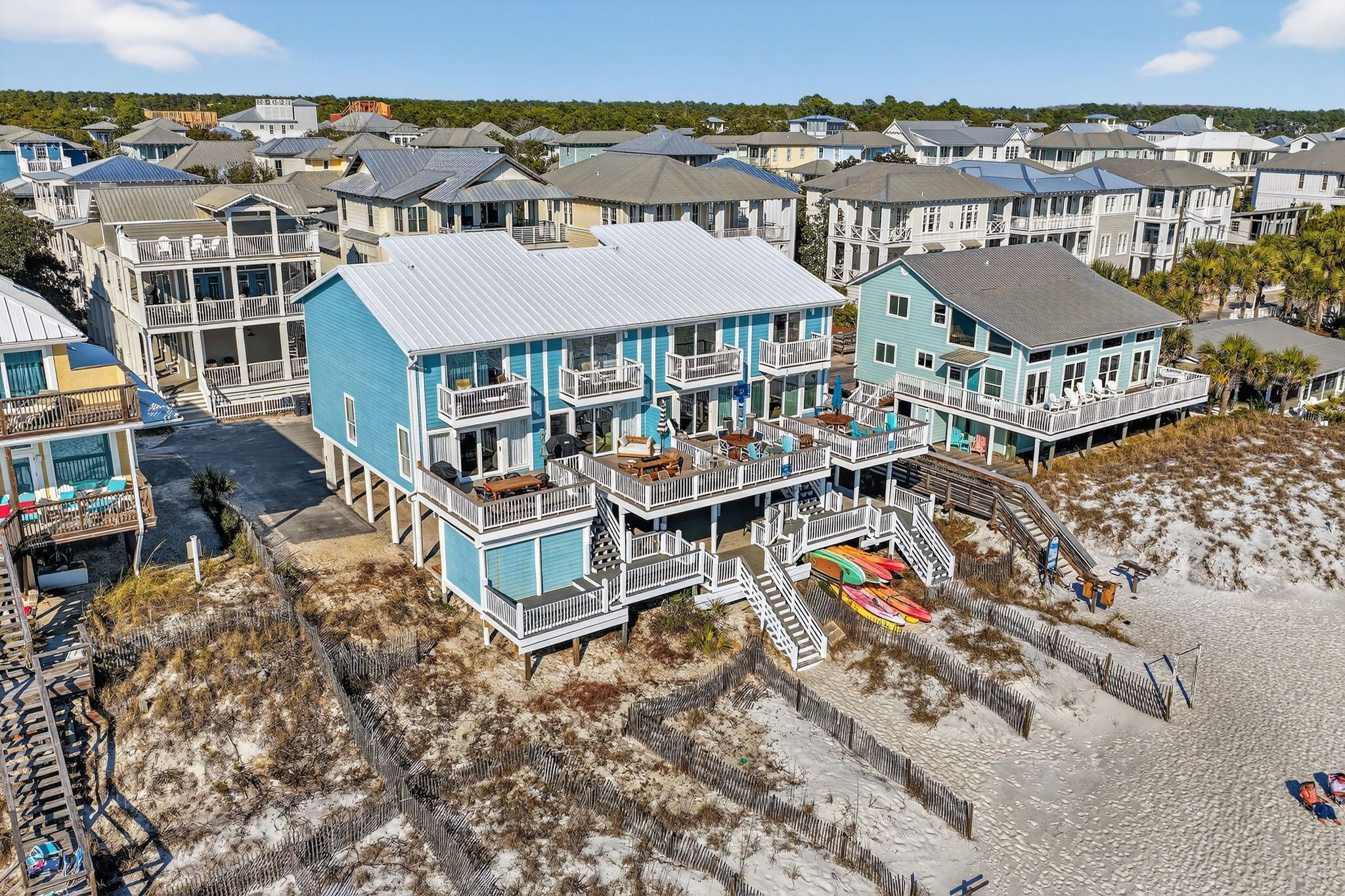 Stay on one of the best beaches in the US located in Santa Rosa Beach, FL. Conveniently LOCATED 1 mile from Seaside Beach you will find the laid back and relaxed beach town Seagrove Beach. Seagrove is known for its old charm and coastal dune lakes along with the close proximity to shops and restaurants. We offer 2 complimentary custom lounge chairs and an oversized umbrella during peak season from March 1 – Oct 31 from the hours of approximately 8:00 AM - 5:00 PM. If more chairs are needed you can choose to rent from the onsite cabana beach chair service or carry out the provided additional chairs from the golf cart garage by the carport. We try and do everything possible to make your stay with us convenient and extraordinary while on your vacation with Gone Coastal Beach Rentals.